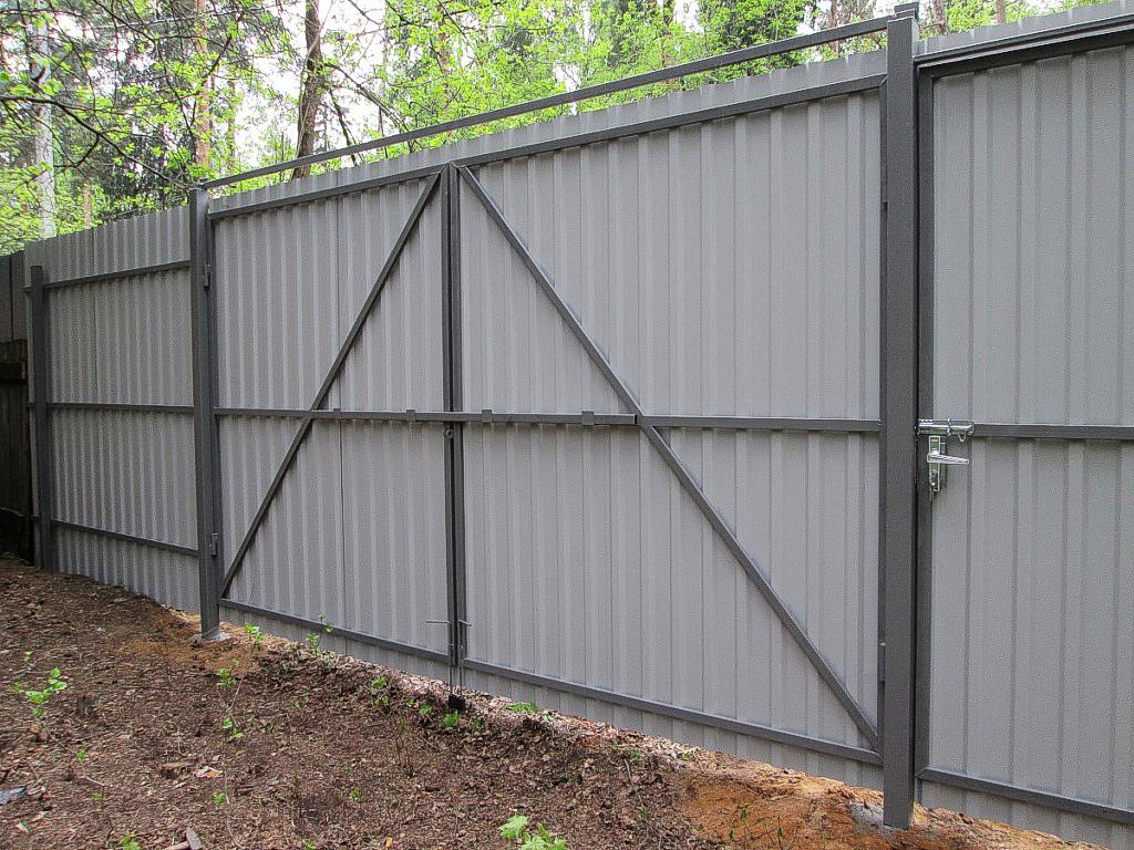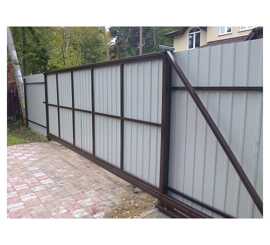 Откатные ворота из профнастила с встроенной калиткой и автоматикой